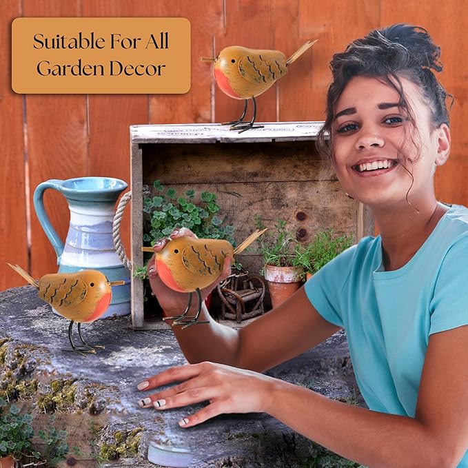 • Metal Birds; This set includes of 3 metal red robin bird ornament garden statues standing at 10cm x 16cm x 6cm the perfectmetal garden decor as animal lawn statues or yard decor