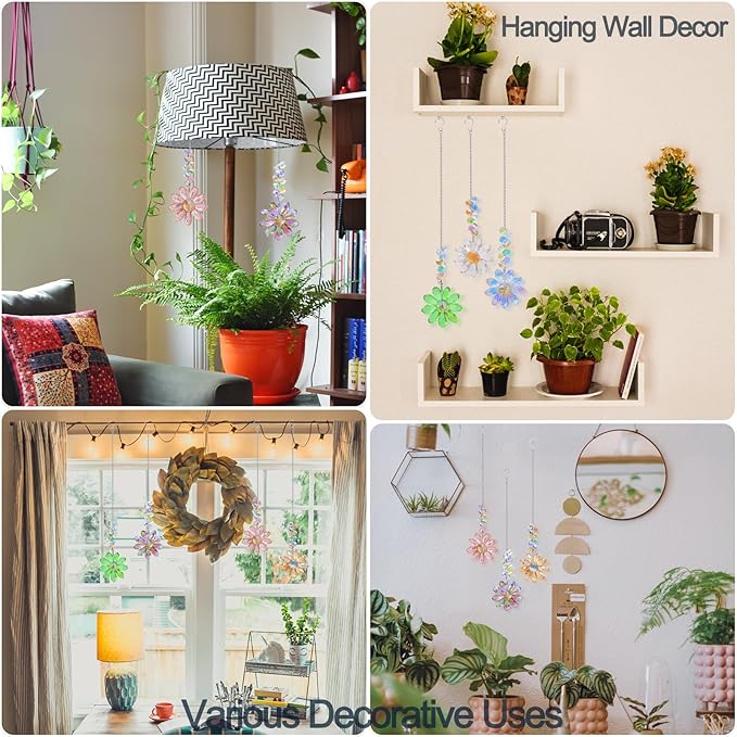 • Crystal Flower Suncatcher: 6 crystal flowers in different colors to create a vibrant and colorful space, and the flowers will bring countless rainbow dots in the sunshine for you