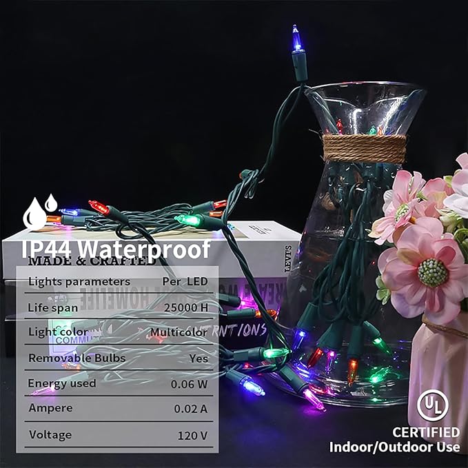 • 【Indoor and Outdoor Widely Usage】: Christmas tree lights waterproof grade is IP44, Great for outdoor Christmas, Halloween, Thankgiving Day decorations