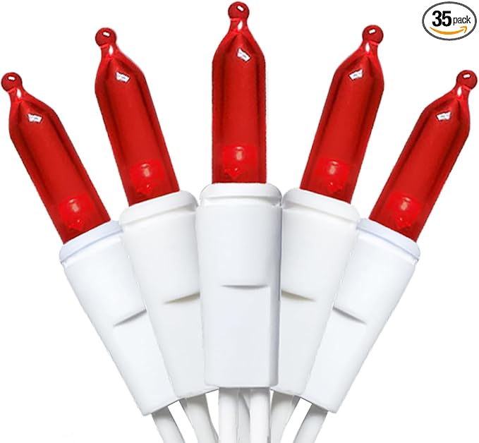 Red LED Christmas Lights - 35 Count Red Christmas String Lights for Small Tree, Crafts, Bedroom, Wedding, Indoor and Outdoor Valentines Day Decorations, 11 Feet White Wire, UL Certified, Connectable