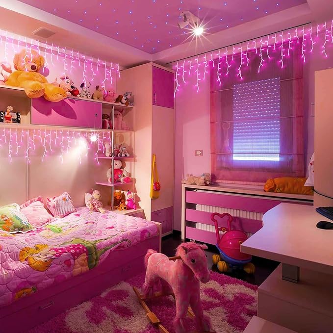 • 【Package Includes】1x 400 LED Pink connectable Icicle Lights, 1x Remote Controller, 1x UL-Certified Plug, 1x Manual. If you have any questions about our product or service, please don't hesitate to contact us. We are committed to providing the best assistance within 24 hours.