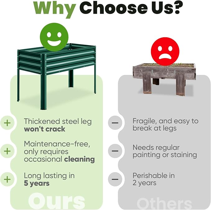 • 【Height: 30", Ergonomic Design】The galvanized raised garden bed stands at a comfortable height of 30 inches, eliminating the need to bend or kneel and sparing your back and knees from strain. It makes a perfect gift for relatives, friends, and anyone passionate about gardening.