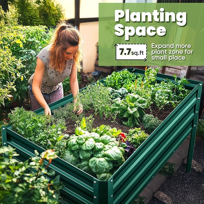 • 【Sturdy & Durable, Capacity: 400 lbs】Our galvanized steel planter raised bed is rust-resistant, sturdy, and can support up to 400 lbs. More durable than wooden raised garden bed kit, it ensures a longer lifespan without the worry of cracking or warping.