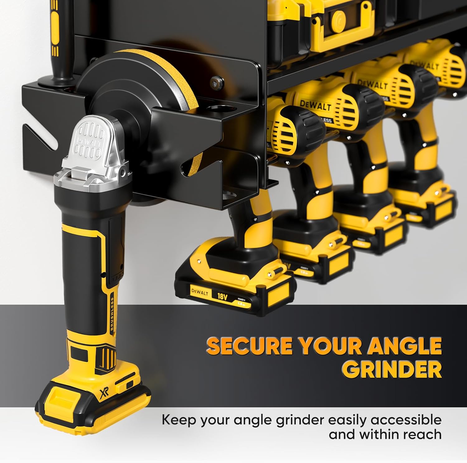 • High-Quality Metal Bearing Capacity of 300 Lbs:Our power tool organizer wall mount with charging station is constructed from high-quality and heavy-duty metal materials. The industrial metal has undergone extensive load-bearing tests, allowing it to support up to 330 lbs. You no longer need to worry about the shelf breaking or falling off the wall. Our power tool holders can accommodate power tools of any weight.