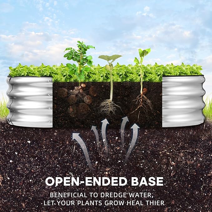 • Open base: This raised garden bed metal galvanized is designed with an open base, Sits on the ground garden bed which can effectively avoid water accumulation .