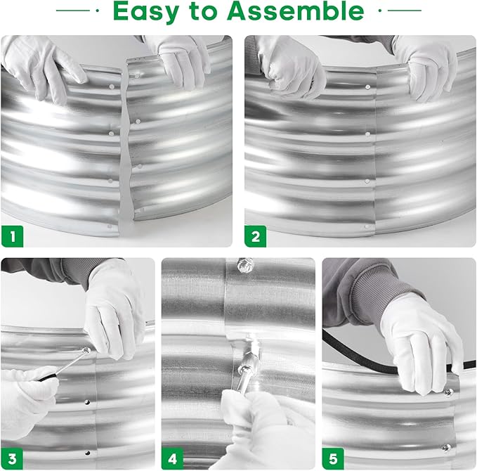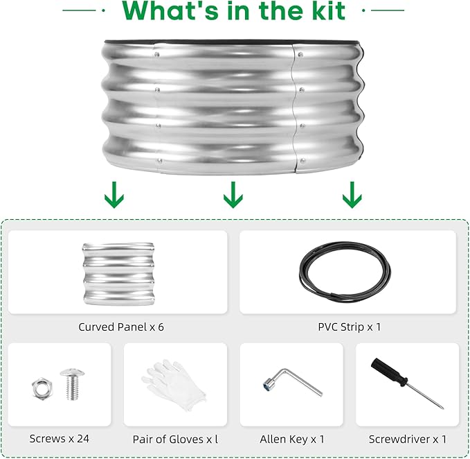 • What You Get: we have included Galvanized raised garden bed kit with detailed assembly instructions, rubber edge strips, safety gloves , wrench tools and with galvanized nuts and bolts in the box .These essential tools elevate your overall planting and gardening adventure.