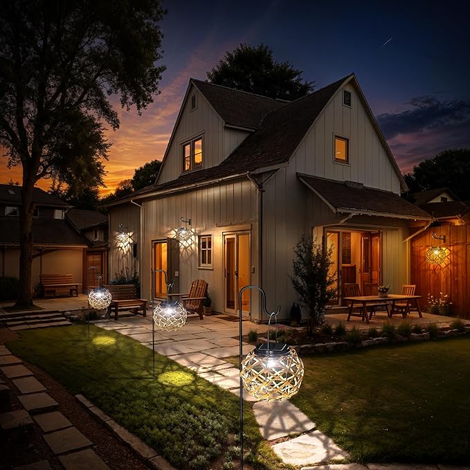 • Waterproof and Durable: Outdoor lanterns light and durable, adopts IP55 waterproof grade and and durable hemp rope, so there is no need to worry about its adverse environment. Its charming openwork pattern and bright light illuminate your patio in a special way, providing a gentle and romantic atmosphere for your garden.
