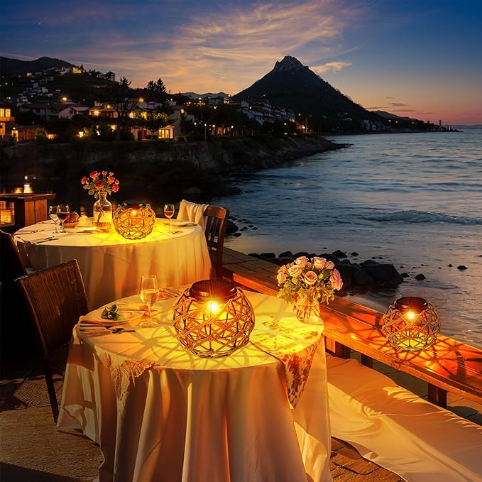 • Unique Retro Rattan Design: Boho Solar garden lantern shines warm light and white light, retro and minimalist style, which is a beautiful decoration for all kinds of places, such as courtyard, patio, table, deck, step, or hang it on a tree, path, wall. If you want to hang it indoors, it will also bring warm atmosphere to your room. The hanging solar light are also a beautiful and practical gifts for family and friends.