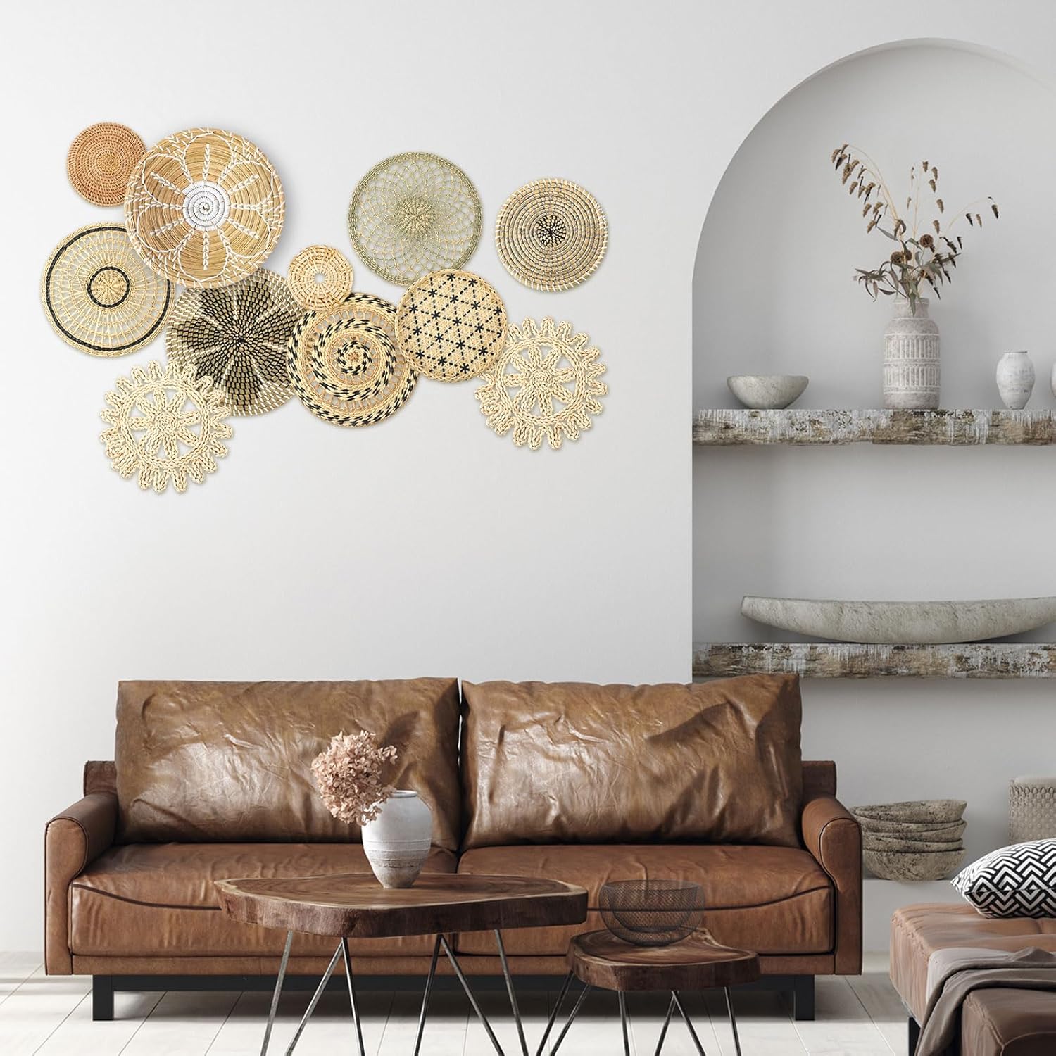 • Wide Range of Applications: boho basket wall decor set as placemats, or as decorative baskets to store toys and accessories, the rustic basket wall art is suitable for many occasions, such as hotels, restaurants, living rooms, bedrooms, schools, stores, offices, dorms, shops, Christmas and more, bringing you an elegant and classic feeling