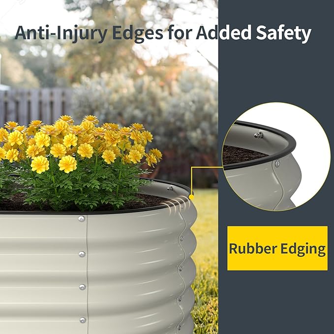 • Safe Rubber Edge:The top edge of the metal raised garden bed comes with a black rubber sealing edge for reinforcement as well as to prevent injury.The 18in depth reduces the stress of bending and the extra large growing space is perfect for most plants.