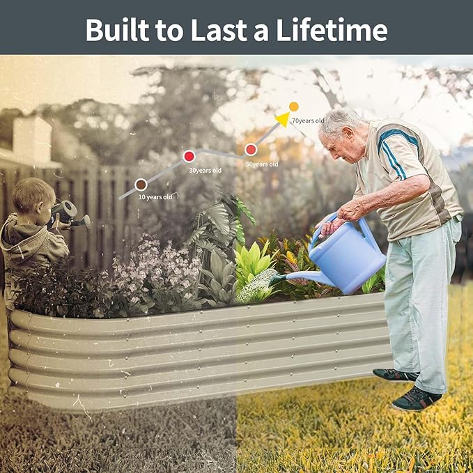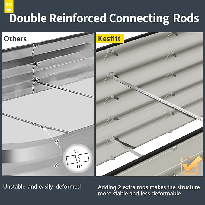 • Thickened Material Super Stable:Galvanized garden bed made of double-layered galvanized sheet with a rust-resistant coating up to 1.2 mm in the thickest overlap, nuts and bolts made of rust-resistant stainless steel.