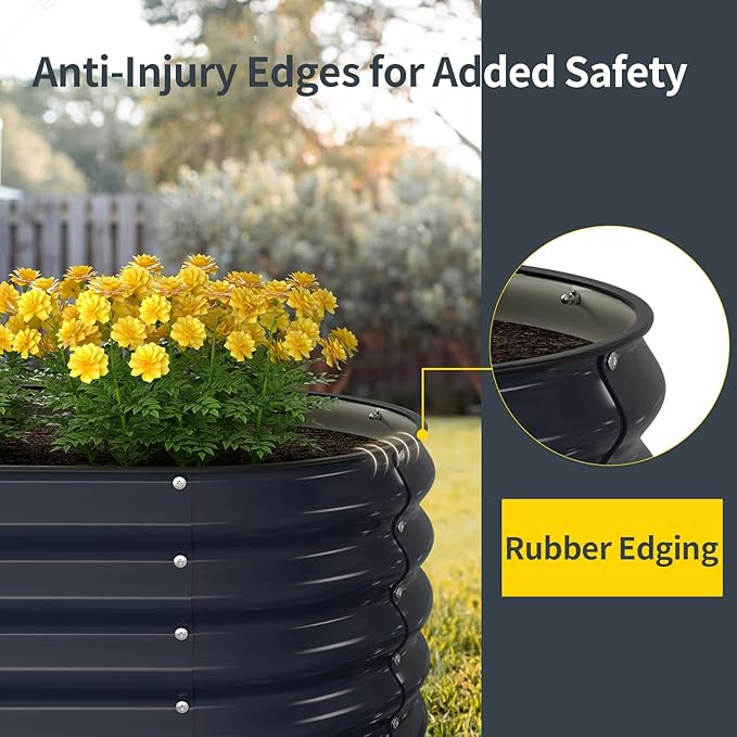 • Safe Rubber Edge:The top edge of the metal raised garden bed comes with a black rubber sealing edge for reinforcement as well as to prevent injury.The 18in depth reduces the stress of bending and the extra large growing space is perfect for most plants.