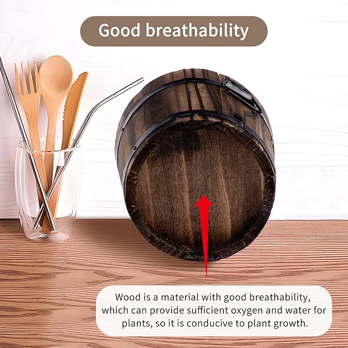 • 【Wide Application】Our wooden barrel planters set is a good choice for indoor and outdoor decor. Nice for home,decor,office, wedding, balcony,patio, garden, bedroom,vacation, other artificial plants and flowers.You can feel the quiet rural comfort when garden or front yard planting.