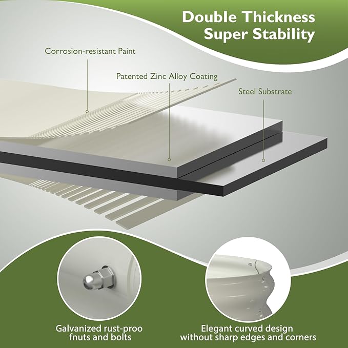 • Oval Designed & Galvanized Material: Winpull Raised garden beds outdoor is made of double-layer galvanized metal sheet with anti-rust coating to avoid rusting. The nuts and bolts are also galvanized. Elegant oval design with firm structure and no sharp corners