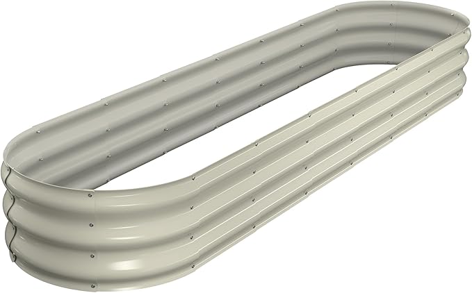 Raised Garden Bed Kit, 8x2x1 ft Galvanized Planter Box Outdoor, Oval Large Metal Raised Beds for Gardening Vegetables Flower Herb (Pearl White)