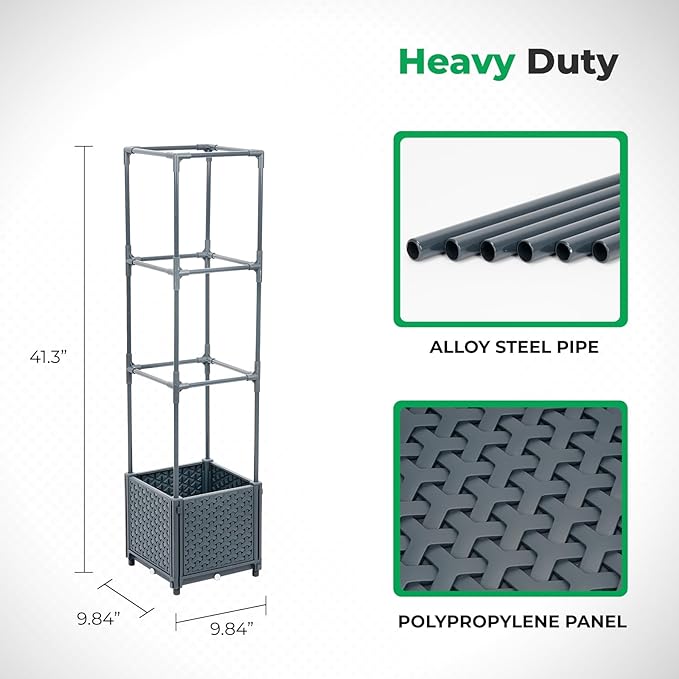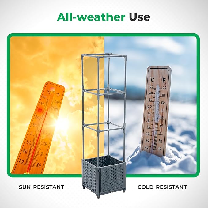 • HIGH QUALITY & DURABILITY: This tomato planter box is made from fade-proof and reinforced PP material, featuring a sturdy alloy steel trellis frame for minimal maintenance. It excels in all-weather conditions, from scorching summers to frigid winters, making it a versatile choice for outdoor plant decoration.