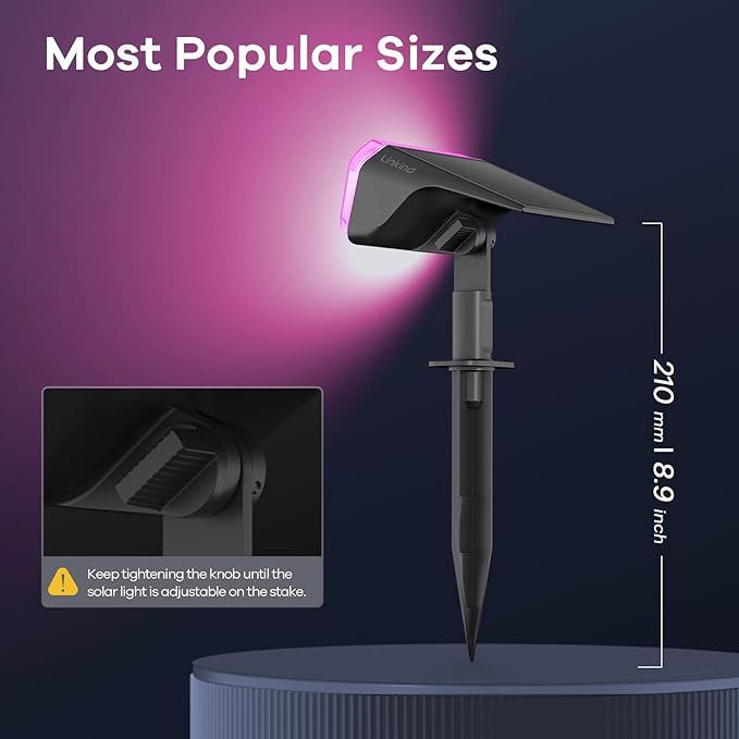 • Easy Installation & Adjustable Design: Securely tighten the knob to adjust the solar lights on the stake for the perfect angle. The quick and hassle-free setup ensures optimal solar charging and lighting coverage