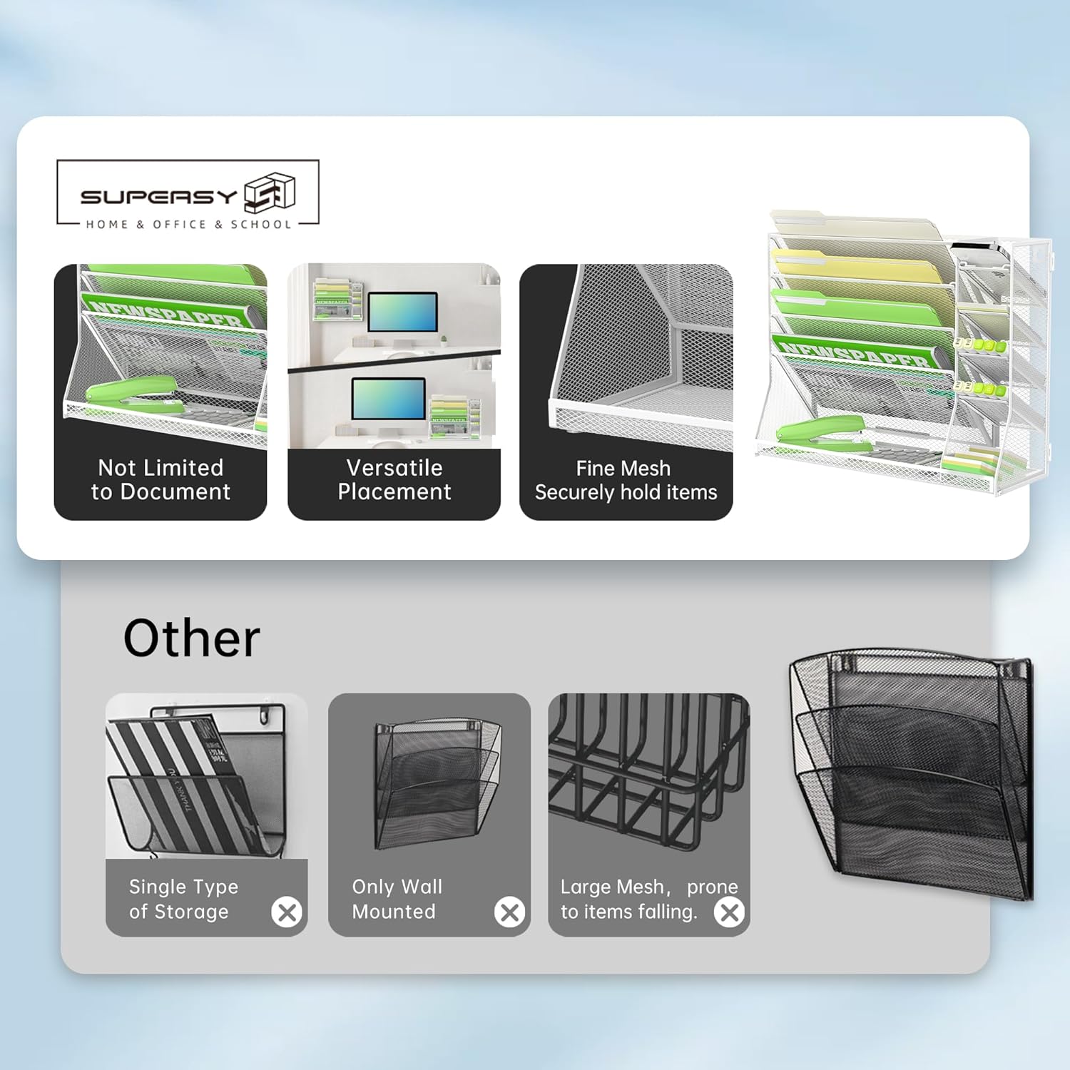 • Sturdy: Supeasy mail holder for wall constructed from high-quality metal, this office wall organizer ensures long-lasting durability. Its strong powder coating resists oxidation and prevents rust.