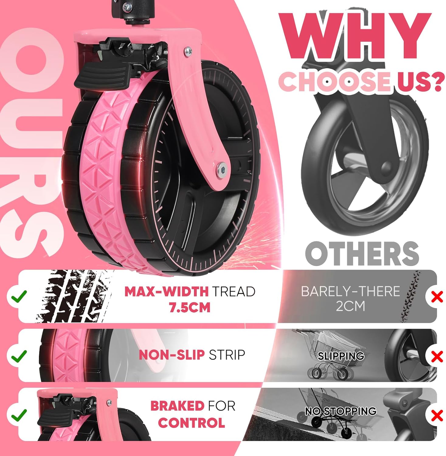 Sekey 220L Collapsible Foldable Wagon with 330lbs Weight Capacity, Heavy Duty Folding Utility Garden Cart with Big All-Terrain Beach Wheels & Drink Holders.Pink