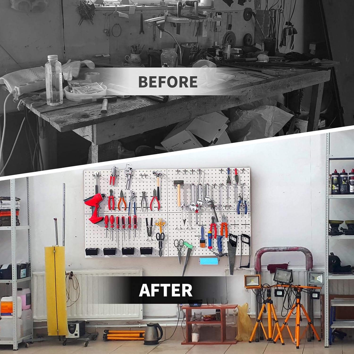 • Effortless Organization: Streamline your garage or workshop with the ultimate metal pegboard system, ensuring a tidy space for your utility tools