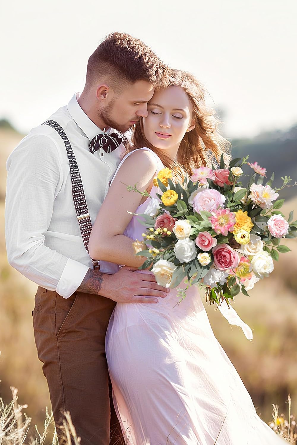Artificial Flower Assortment for DIY Centerpiece Arrangement Wedding Hand Bouquet Flower Bouquet Centerpiece Arrangement Party Baby Shower Home Decoration (Pink Yellow)