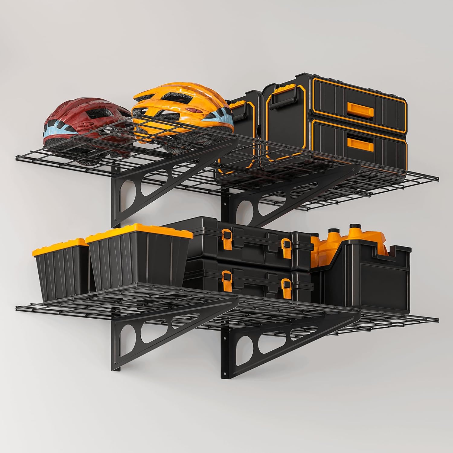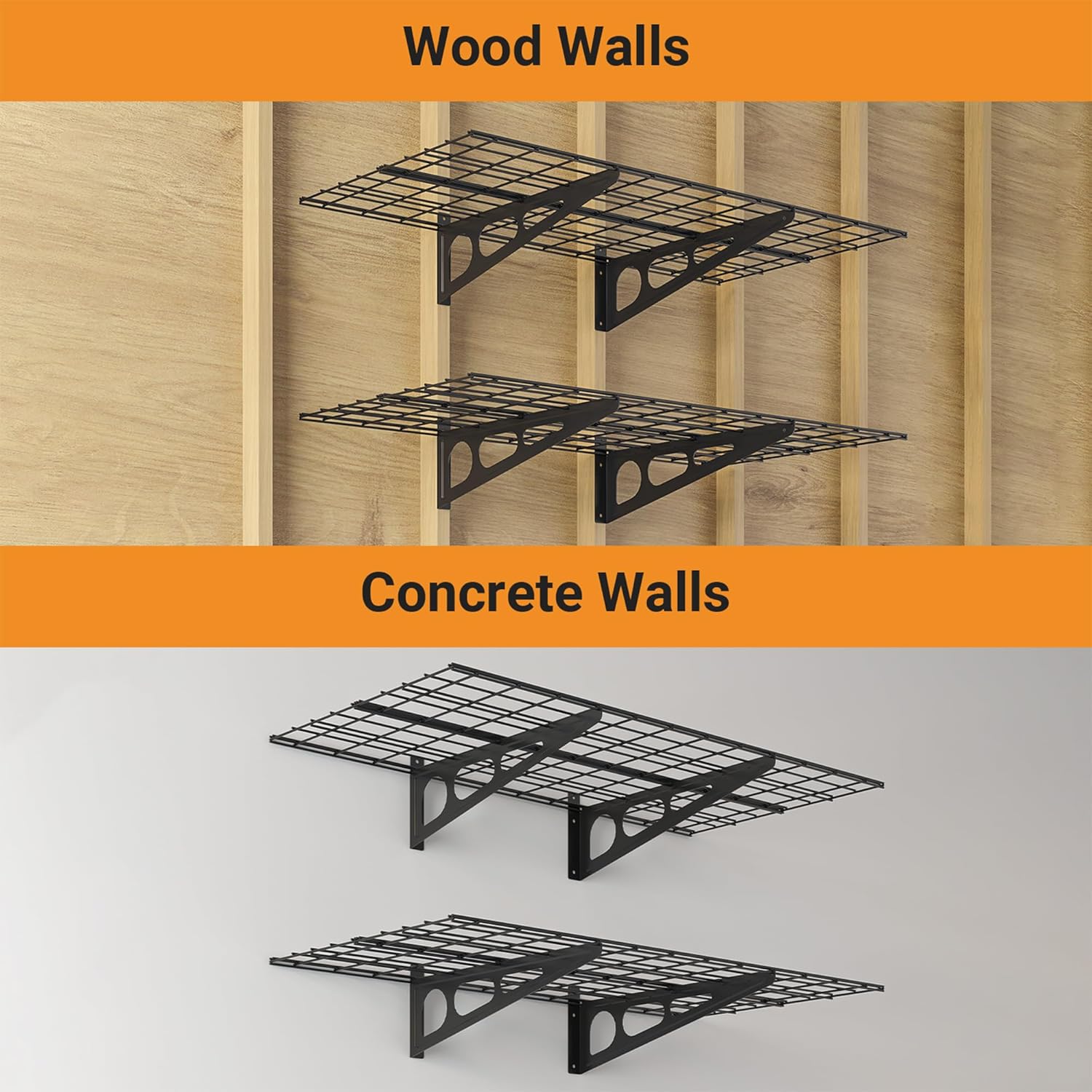 2x4 ft Garage Shelving, 2-Pack Wall-Mounted Shelves for Garage, Kitchen, Pantry Storage, 400 lbs Total Load Capacity Wall Shelving, Black