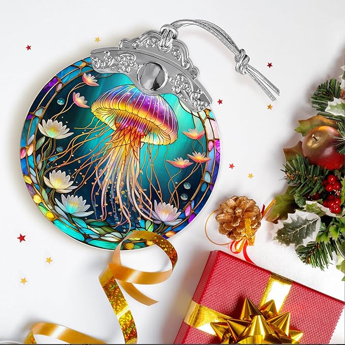 • 🔆Design is permanently imprinted on the ornament via sublimation, so it will never fade or peel. This beautiful jellyfish stained-glass like ornament is sure to make any ornament collector happy.