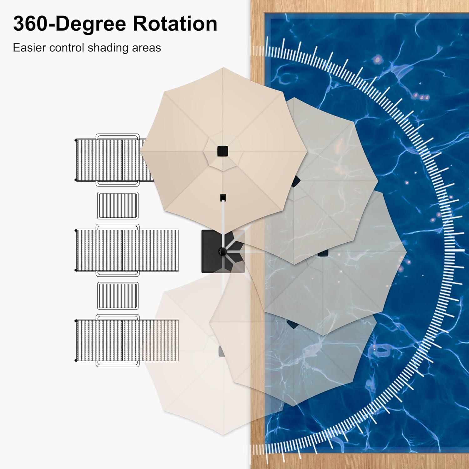PURPLE LEAF 10ft Patio Umbrella With Base Solar powered LED Cantilever Umbrella with LED lights Windproof Outdoor Offset Umbrella for Garden Deck Pool Patio, Beige