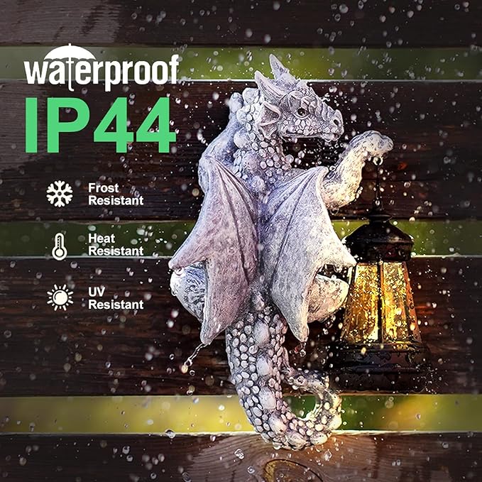 • 🎨【Artisanal Elegance】This 23.5 cm resin dragon statue employs advanced carving techniques to replicate legendary draconic features, including intricate scale textures. A groove on its back ensures secure placement on walls or tree branches, seamlessly transitioning from indoor decor to outdoor garden displays