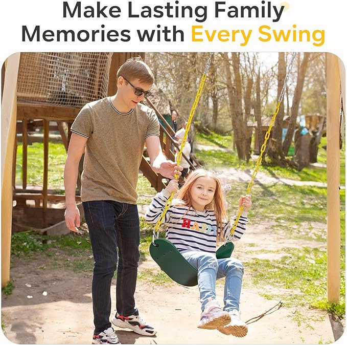 • 【Anti-Rust Coated Chains 】Decorlife swing set include two 66 inch long zinc-plated heavy duty chains, 30 inch of which covered thermoplastic coating (industry-leading 0.5mm thickness) to prevent finger pinches no hair snags or tangles and resist rain/snow corrosion.