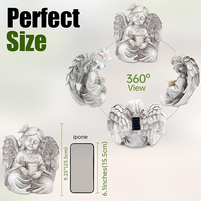 • Solar Angels for Outside Garden: The size of this solar angel statue light exceeds that of the majority available on the market, allowing you to see it from a distance. It looks adorable both day and night. The guardian angel solar lights add a beautiful ambiance to your garden, enhance the atmosphere of your garden at night.