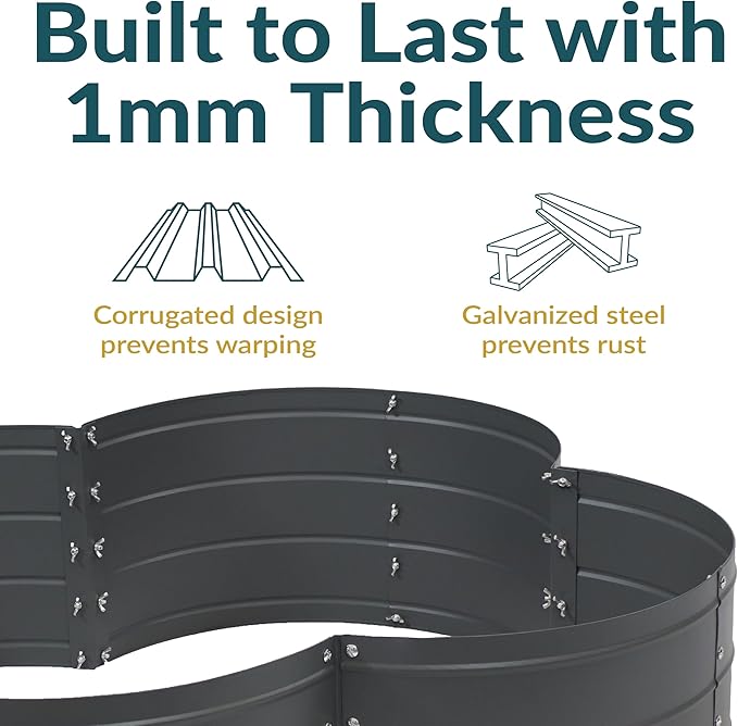 • DURABLE CONSTRUCTION: This outdoor raised garden bed is made from galvanized steel to resist rust and weathering over time.