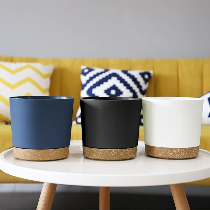 • 3 Packs Modern Decorative Plastic Plant Pots - Dimension: 8 in Diameter x 7.5 in Height, plants not included.