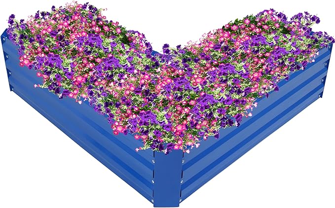 • UNIQUE CORNER SHAPE: Add this galvanized raised planter bed to the patio or backyard. The unique L-shaped design makes it a great fit for corners and will add style to any outdoor space.