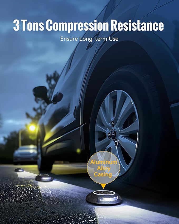 • 【Waterproof & Pressure Resistant】The outdoor solar lights are made of high-quality aluminum alloy and have been tested to withstand 3 tons of pressure and impact from cars and ships. The outdoor solar lights meet IP68 waterproof standards and can withstand any harsh weather conditions. You don't need to disassemble it in rain or snow