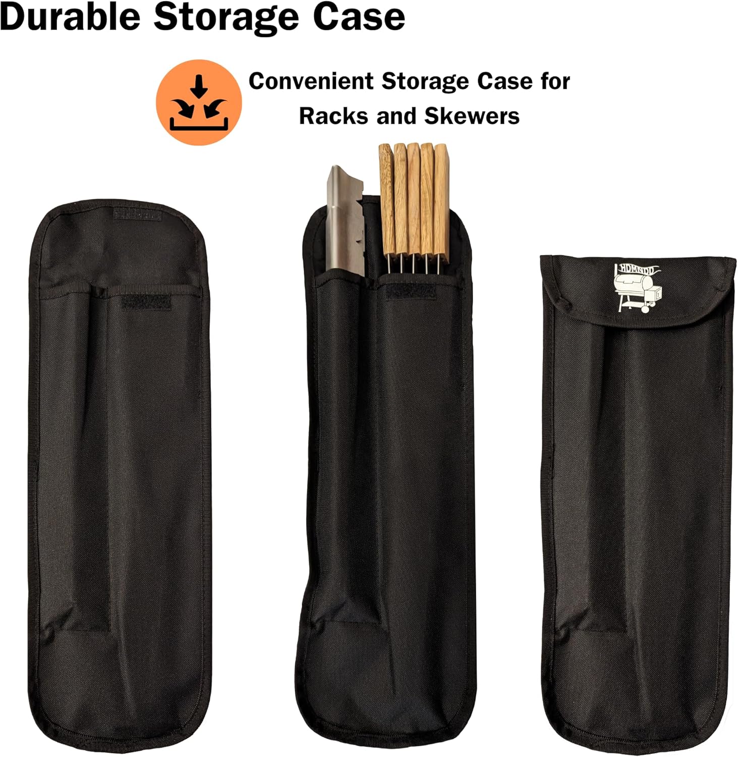 • Convenient and Portable Storage - Premium durable Oxford Cloth Storage Case holds the two racks and five skewers with a hook and loop closure. The racks and skewers are kept in two separate pockets to keep your kit organized and protected.