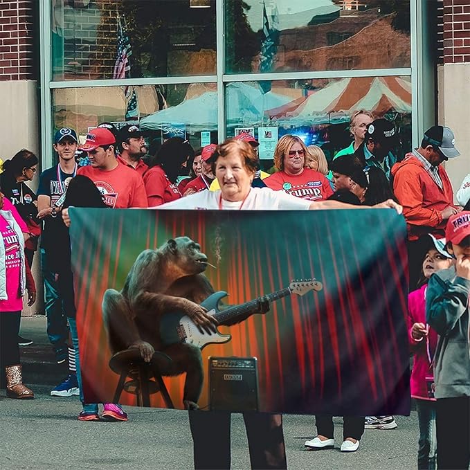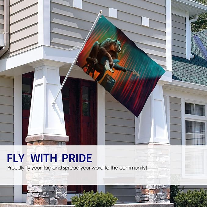 • Material: This Monkey Music Gorilla Playing Guitar Flag Is Made Of Polyester, Ensuring Its Durability And Lightweight Design.