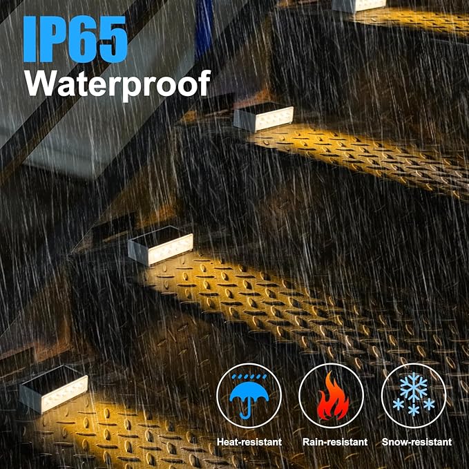 • 【Water & Pressure Resistant】Outdoor step light with ABS shell is tough and durable, light weight. IP65 waterproof rating means that stair light will not be damaged even if bad weather. Warm white step light not only can brighten up your stair. As a front porch or patio decoration, fence lights, deck plywood lights, also makes a very cool and ideal gift for loved ones, housewarming and gardening events.