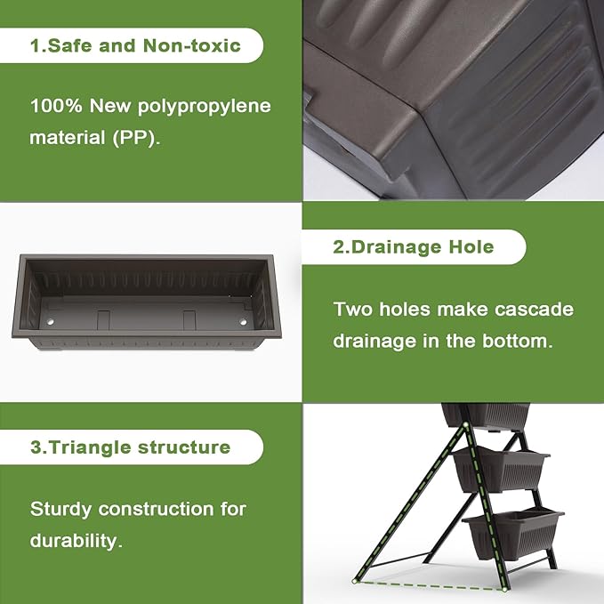 • 【Sturdy & Heavy-Duty Construction】Premium steel. Handles weight of soil, water, and greenery. Clever triangular design ensures stability. Herbs, flowers, and veggies stand tall and proud.