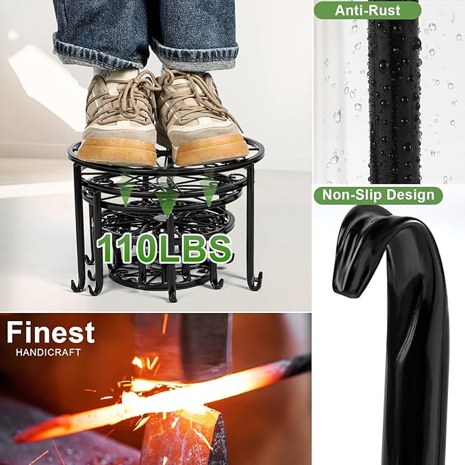 • [๐‘๐ฎ๐ฌ๐ญ ๐๐ซ๐ž๐ฏ๐ž๐ง๐ญ๐ข๐จ๐ง]:This metal plant stand is perfect for indoor outdoor plant. Black iron outdoor plant stand is of excellent quality and is carefully crafted using high-quality materials. Its surface is coated with special baking paint can prevent corrosion and rust, thus extending its service life and maintaining its original quality and appearance even after prolonged exposure to moisture.