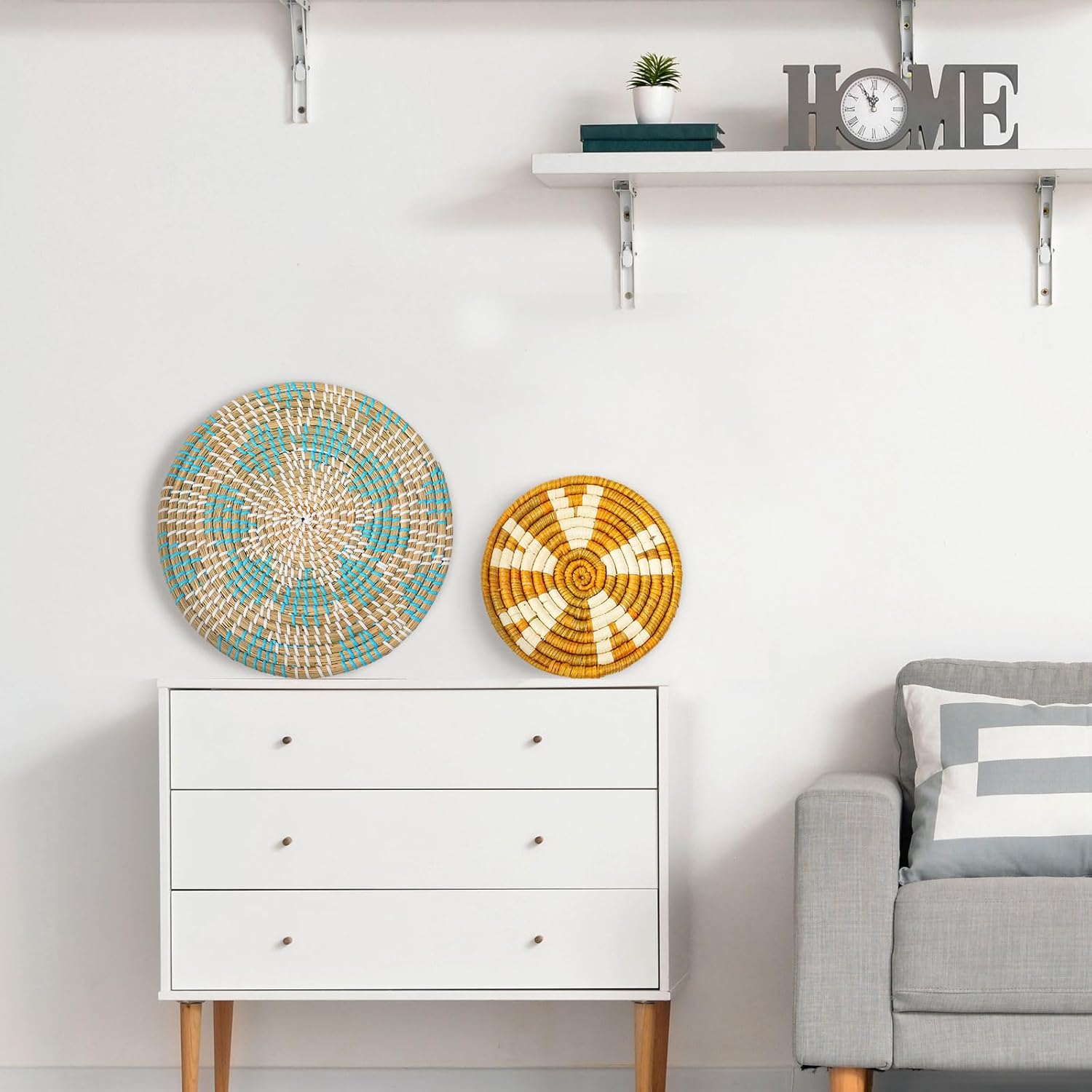 • Wide Range of Applications: boho basket wall decor set as placemats, or as decorative baskets to store toys and accessories, the rustic basket wall art is suitable for many occasions, such as hotels, restaurants, living rooms, bedrooms, schools, stores, offices, dorms, shops, Christmas and more, bringing you an elegant and classic feeling