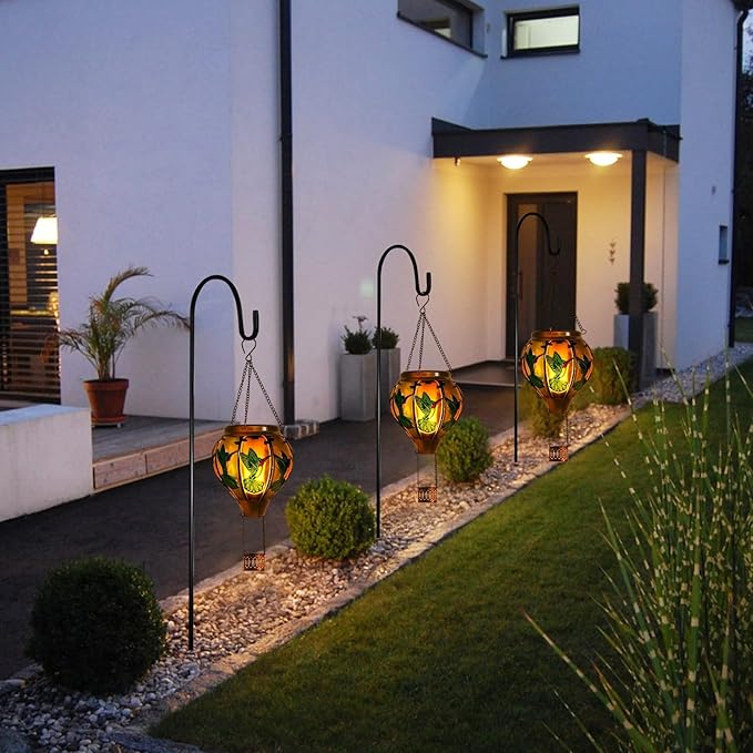• 【Unique Hot Air Balloon Design】--This hanging solar light is composed of 8 pieces of hummingbird glass with lifelike flame lights. As night falls, their glow adds warmth and comfort to your garden, patio, yard, path, and more, great Christmas decorative lights.