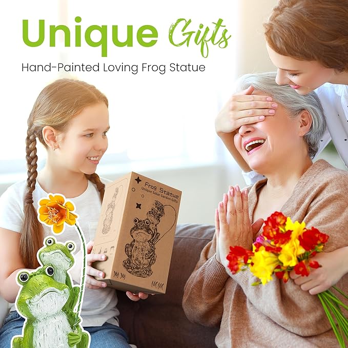 • Hand-Painted Garden Statues: Each Solar Frog Garden Sculpture is finely hand-painted with excellent craftsmanship, with exquisite lighting design in the flower making it an ideal gift for women. Perfect decorations for yard, garden, outdoor spaces
