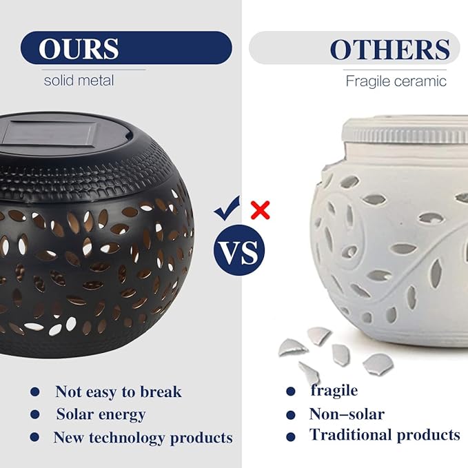 Solar Table Light Outdoor Waterproof- Solar Powered LED Lamp Hollowed-Out Black Metal Desktop Decorative Lantern for Indoor Desk Bedroom Patio Garden Pathway Yard