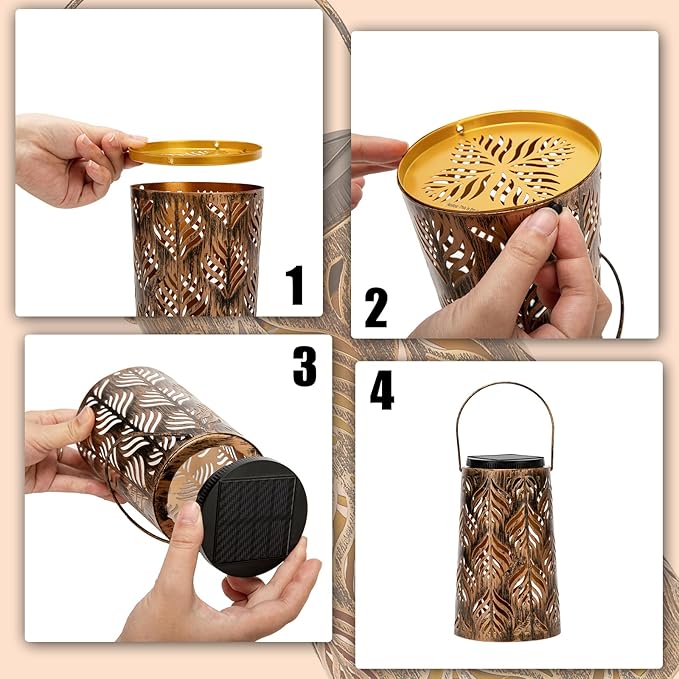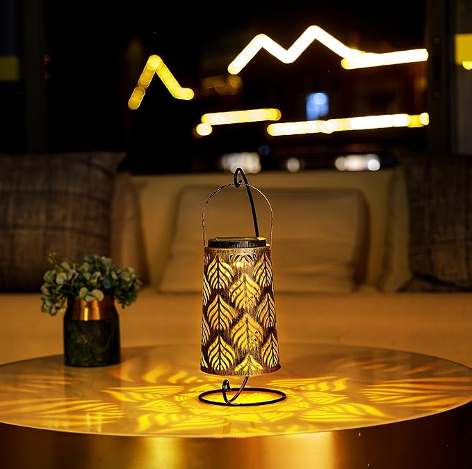 • 【Gardening Arrangement Hostess Gift】The Solar lanterns with unique leaf hollow patterns, can be used as table lanterns to created a romantic atmosphere. Our Bohemian style lantern comes with clips, You can hang it on a tree or placed on the tabletop, terrace, balcony and patio on the ground, and an exquisite gifts for women,festivals, Christmas, wedding, party and birthday.