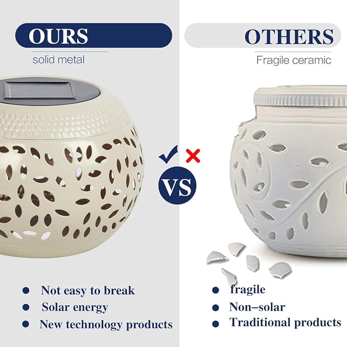 Solar Table Light Outdoor Waterproof- Solar Powered LED Lamp Hollowed-Out White Metal Desktop Decorative Lantern for Indoor Desk Bedroom Patio Garden Pathway Yard