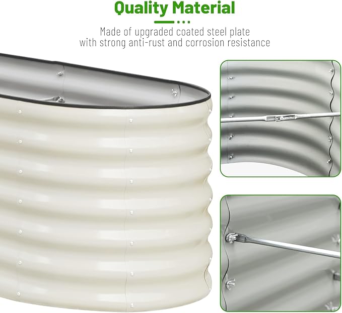 • EASY ASSEMBLY: Our oval garden box with user manual and tools allow you to easily assemble within a short time, along with heavy duty rubber edging to cover the edges providing protection from injury.