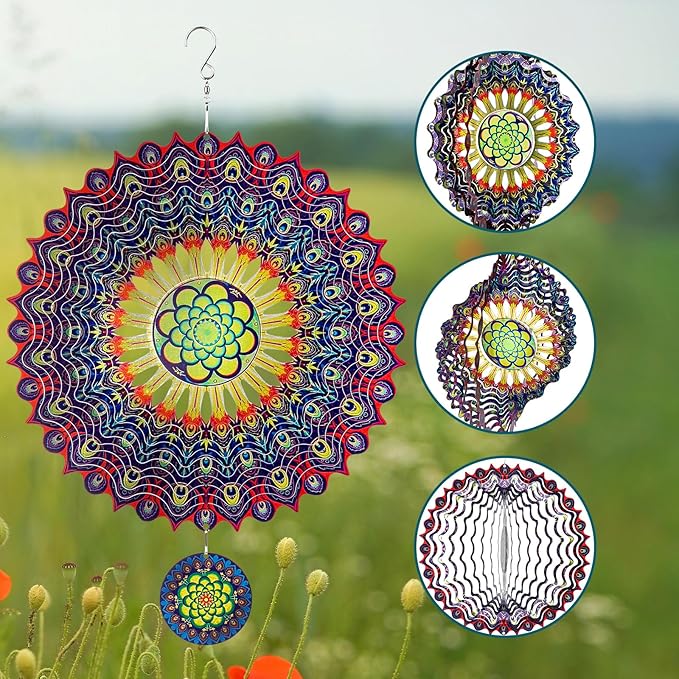 • 3D OUTDOOR WIND SPINNERS : Our wind spinners are designed with a fascinating, magical 3D vision and an attractive look that bring a mesmerizing charm to any space. The intricately designed and laser cut metal hanging wind sculptures that captivate the eye and add a touch of elegance to your surroundings.