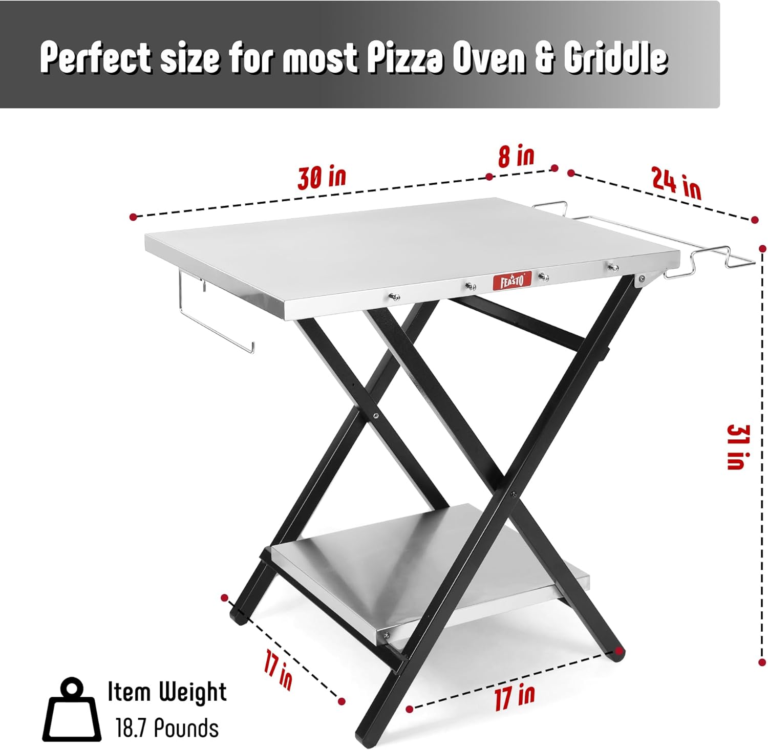 Outdoor Grill Table, Foldable Pizza Oven Stand & Blackstone Griddle Stand with Garage Rack & Tissue Holder, Folding Outdoor Prep Table for Gathering and Party, 30" x 24", Stainless Steel