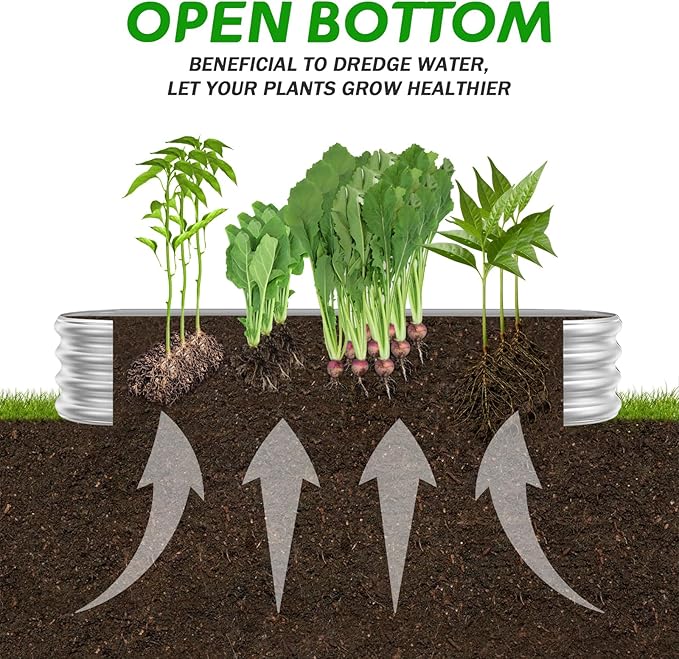 • 【Open Bottom】This metal raised garden bed is designed with an open base. It is good for drainage, and plants roots won't be sick from excessive water. Also, plant roots can absorb better nutrition from the soil, and grow more healthy.